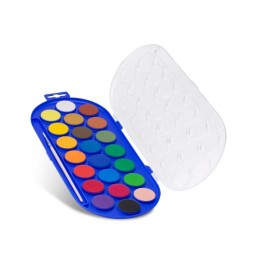 Tempere acriliche in barattolo da 25 ml, con coperchio a vite. Colori fini, a base d'acqua, con effetto asciutto opaco. Coprenti e facili da stendere, sono ideali per decorare qualsiasi tipo di superficie: cartoncino, legno, vetro, cuoio, cotto, ceramica, plastica, sassi, DAS, metallo, etc. Innocui e sicuri, miscelabili tra loro, offrono una resa permanente ed una buona resistenza alla luce. Hanno odore neutro e sono lavabili da mani e pennelli con acqua tiepida e sapone. Disponibile in confezioni da 6 e 12 colori assortiti, in barattoli sfusi fino a 24 colori e in nuovo espositore da 144 colori assortiti.